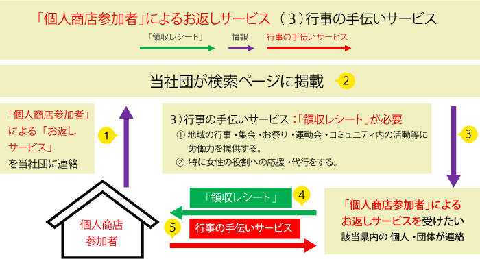 [⑤] 地元住民はサービスを行う個人商店の「領収レシート」の提示により「お返しサービス」を受けられる。